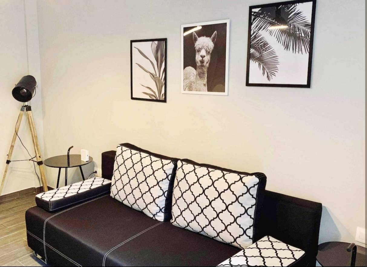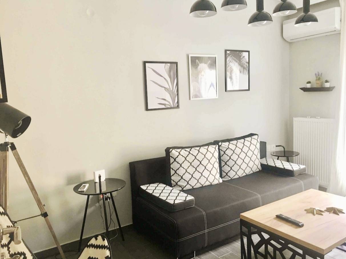 Διαμέρισμα 45 τ.μ. στον 3ο όροφο (χωρίς ανελκυστήρα)που αποτελείται από ένα υπνοδωμάτιο, σαλόνι με καναπέ- κρεβάτι, κουζίνα, μπάνιο.