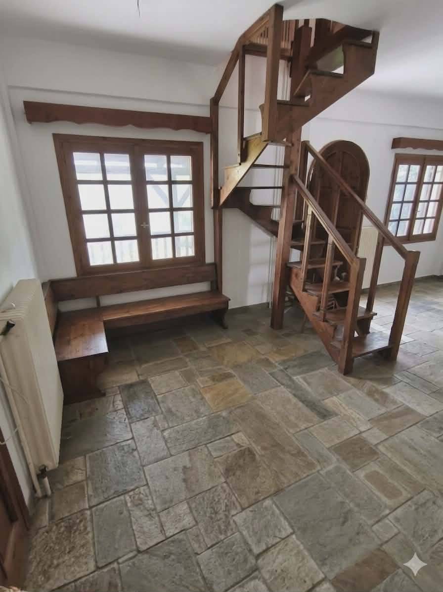 3. Ημιυπόγειο χώρο με 2 δωμάτια και μικρή τουαλέτα-μπάνιο, ο οποίος έχει ξεχωριστή είσοδο, αλλά επικοινωνεί εσωτερικά και με το ισόγειο, με σκάλα. Μπορεί να λειτουργήσει ως ξενώνας.