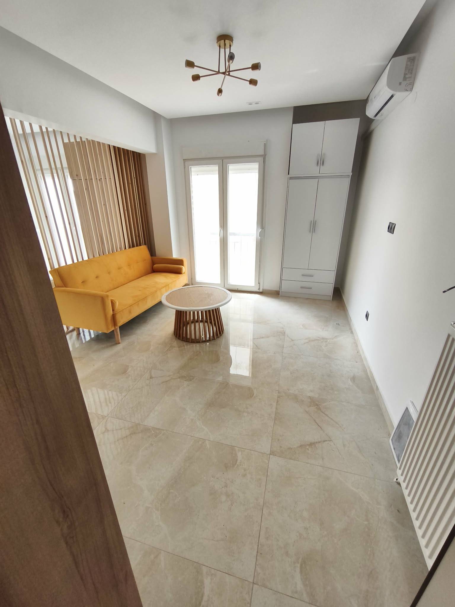 Εξοπλισμός: Πλήρως επιπλωμένη με μοντέρνο καναπέ-κρεβάτι, coffee table, ντουλάπα και εντοιχιζόμενες ηλεκτρικές συσκευές.